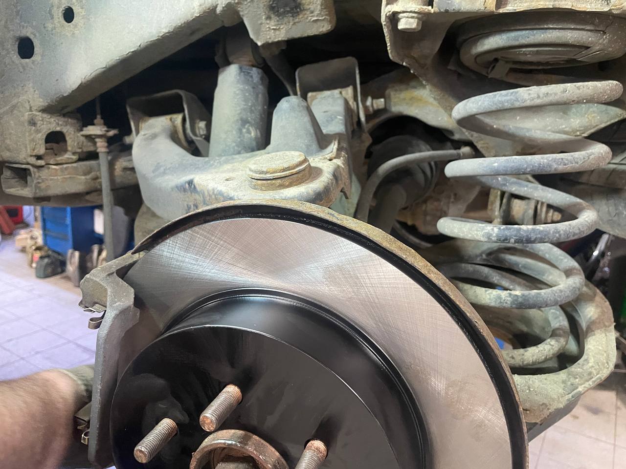 При первичном осмотре, помимо неисправных противотуманок, наши специалисты обратили внимание на состояние тормозной системы. Тщательная проверка выявила критический износ тормозных дисков и колодок по кругу. Безопасность превыше всего, поэтому мы настоятельно рекомендовали владельцу произвести замену.